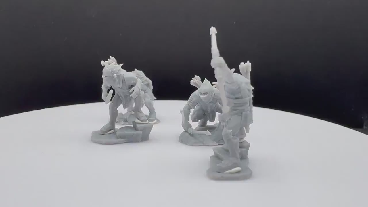 Cleaned miniatures, no supports (minimal supports may be present).
