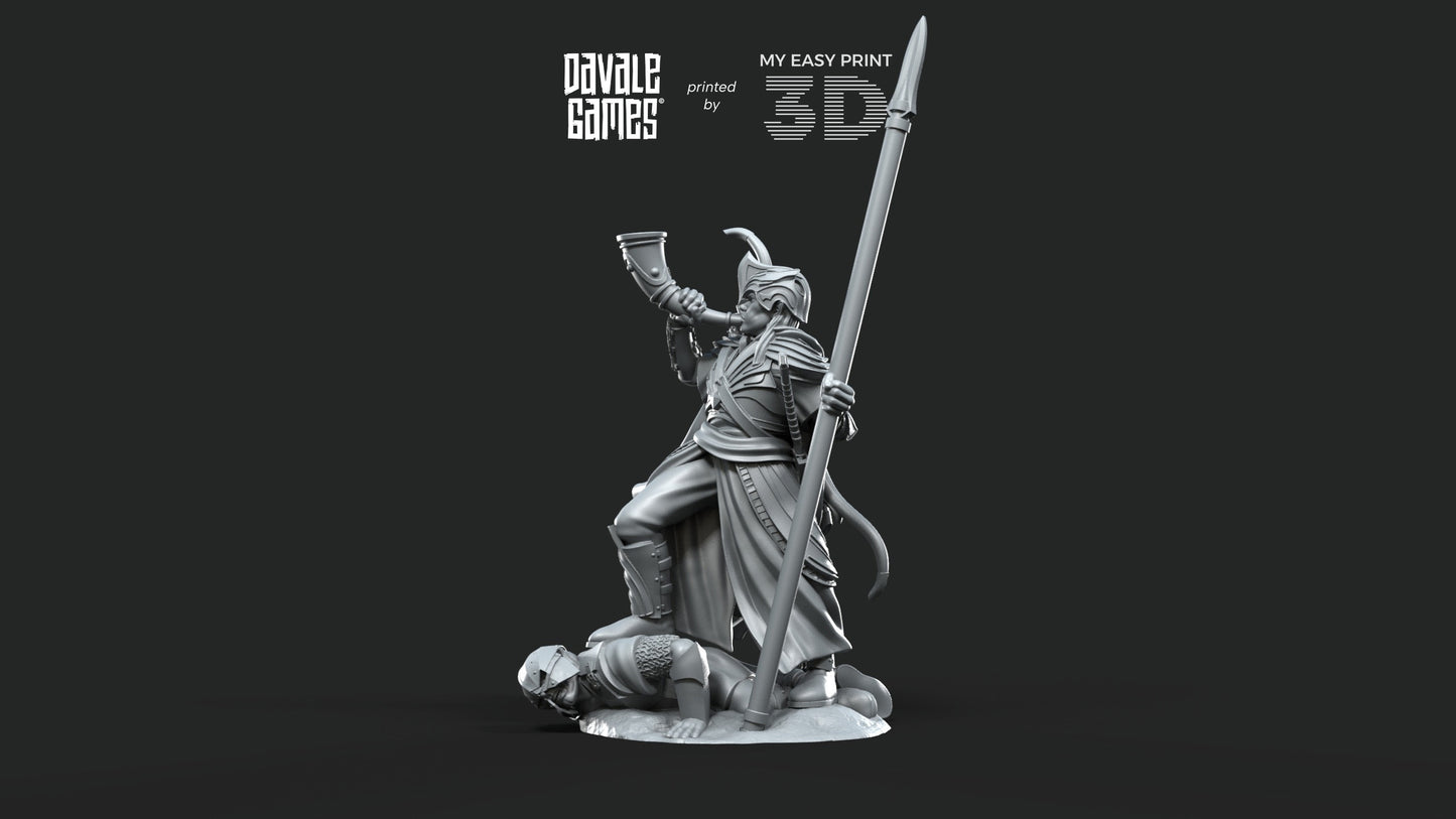 Galanthir Elves Warrior with Horn and Spear - Davale Games - 3D Printed with high quality resin for LOTR/D&D games