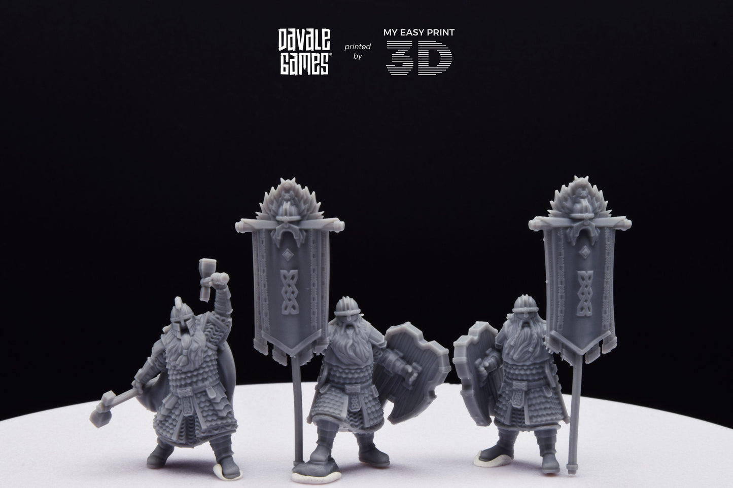 Kingdom Champion Dwarf and Banner - Davale Games - 3D Printed with high quality resin for LOTR/D&D games