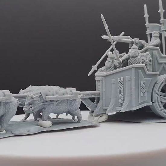 Silver Goat Dwarves Charriot - Davale Games - 3D Printed with high quality resin for LOTR/D&D games