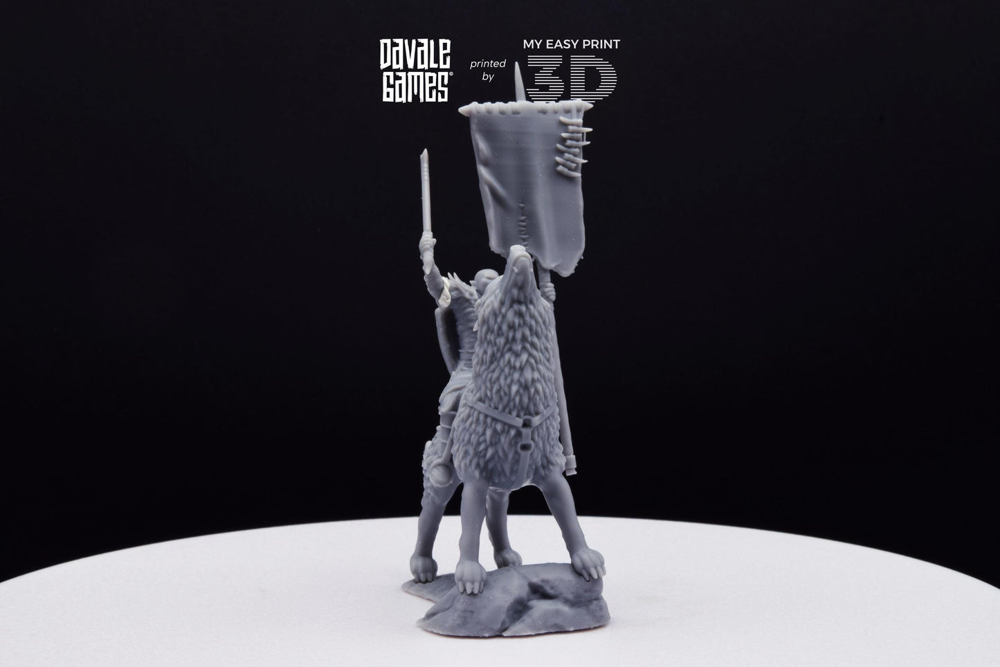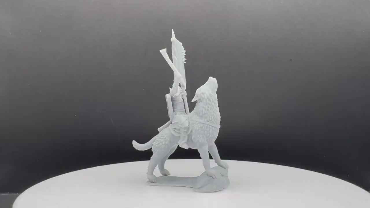 Warg Rider with Banner - Mounted - Davale Games - 3D Printed with high quality resin for LOTR/D&D games
