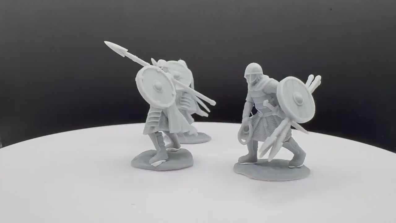 West Humans Regular Warriors with Throwing Spear and Shield - Foot - Davale Games - 3D Printed with high quality resin for LOTR/D&D games